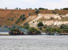 За одним із сценаріїв, військовослужбовці танкових підрозділів Об'єднаних сил, що знаходяться в спеціальних районах відведення відповідно до рішень ТКГ в Мінську, відпрацьовували здійснення маршу на одному з полігонів Донецької області. Танкісти здійснювали переправу через водну перешкоду по поромній переправі. А привести цю переправу за лічені хвилини - це було вже завдання для підрозділів оперативного забезпечення Об'єднаних сил.