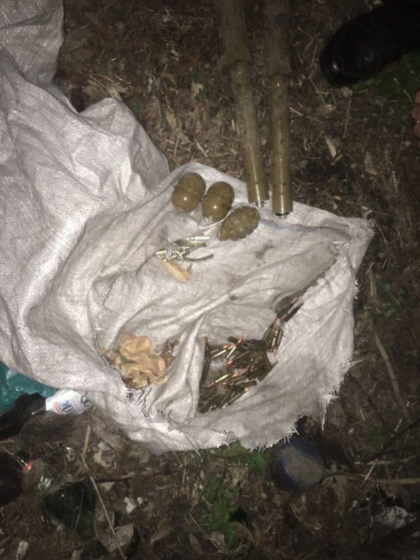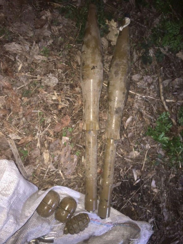 У схованці правоохоронці виявили два постріли РПГ-7, дві гранати РГД-5, одну гранату Ф-1, три запали до гранат та 40 патронів калібру 5,45 мм, повідомили у прес-центрі штабу Операції об'єднаних сил.