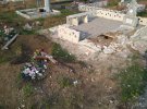Транспортний засіб, ймовірно трактор з ковшем знищив огради, потрощив надгробки та хрести, пишуть Донецькі Новини.
