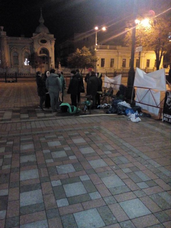 - Вам сьогодні є де ночувати? - запитує у мітингарів, - Якщо ні, то я зараз подзвоню й організую автобус. Поїдемо до мене в офіс. Трохи далі, ніж готель "Либідь", але є душ. Помиєтеся й поспите.