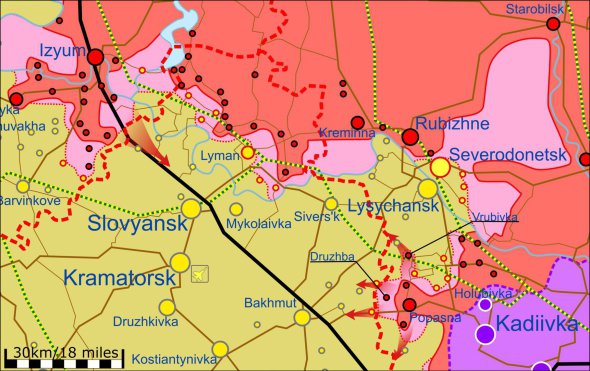 "Існує висока ймовірність того, що українські сили на північ від Попасної ризикують бути оточеними російськими військами, що просуваються до Бахмута. Хоча очікується, що українські підкріплення перекидаються, щоб зупинити прорив", - зазначили аналітики.