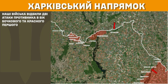 На Харківському напрямку наші війська відбили дві атаки противника в бік Бочкового та Красного Першого.