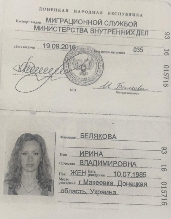 - т.зв. "начальник відділу зовнішньополітичних зв'язків і протоколу МЗС ДНР" Ірина Белякова:
