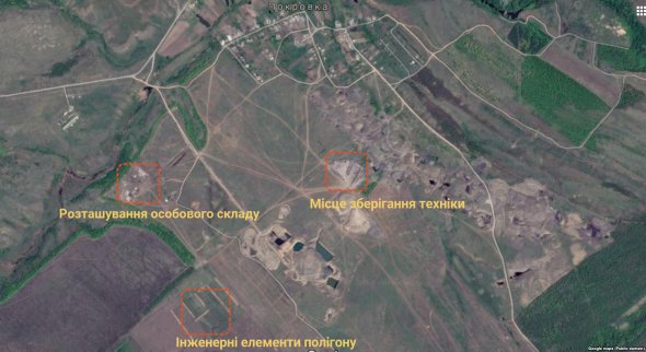 "На зроблених раніше знімках цієї ж місцевості видне розміщення полігону, але військової техніки не спостерігається, а місце її зберігання ще не підготоване та являє собою залишки від гірничих робіт", - йдеться у повідомленні.