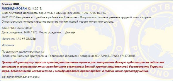 Дані про Головньова є в базі "Миротворця".