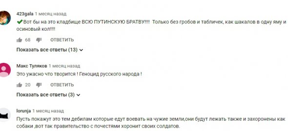 "От би на це кладовище ВСЮ ПУТІНСЬКУ БРАТВУ!!!! Тільки без трун і табличок, як шакалів в одну яму і осиковий кілок!!!",