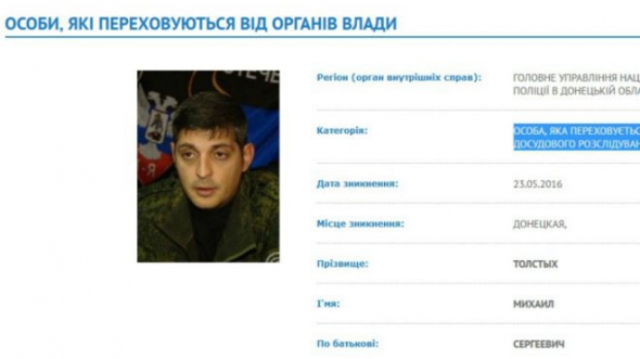 Нацполіція оголосила в розшук командира бандформування ДНР "Сомалі" Михайла Толстих на прізвисько Ґів".