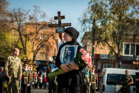 Сьогодні, 18 жовтня, у Миргороді на Полтавщині попрощалися з 36-річною Ярославою Никоненко, яка 15 жовтня загинула від кулі снайпера в зоні ООС.