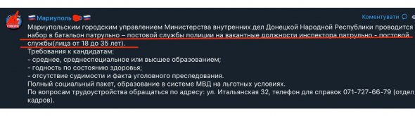 Тепер це роблять під виглядом пропозиції роботи в "народній міліції" так званої ДНР, повідомив радник мера Маріуполя Петро Андрющенко в Telegram 11 серпня.