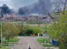 Фото зруйнованих ущент будинків та задимленого від постійних бомбардувань міста показав радник мера Маріуполя Петро Андрющенко в Telegram.