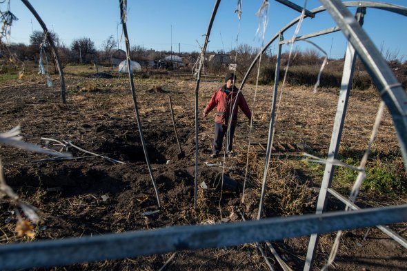 26 жовтня росіяни з гаубичної артилерії обстріляли позиції Збройних сил України під Гранітним на Донеччині. Перед тим бійці 93-ї бригади зайшли з гуманітарною місією в сусіднє село Старомар'ївка. На фото - вирва від снаряду, який убив воїна.