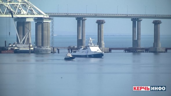 Водночас, крім невідомого корабля, "біля арки знаходяться три російських військових катери і над мостом кружляють два військові вертольоти".
