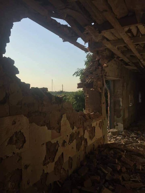 Це наслідки сьогоднішнього прямого попадання снарядів бойовиків у житлові будинки у Мар'їнці на Донеччині.