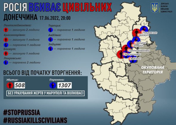 За 17 червня російські окупанти вбили чотирьох мирних жителів Донецької області.