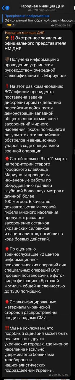 Російська пропаганда разом з "офіційними органами ДНР" випустила серію "спростувань" інформації про масові поховання в Мангуші, повідомив радник міського голова Маріуполя Петро Андрющенко в Telegram.