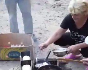 Сюжет російського телебачення оприлюднив український журналіст Денис Казанський в Тelegram 25 липня. На відео видно, як люди готують їжу просто на дорозі.
