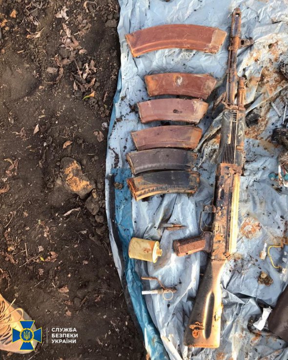 Зокрема, він повідомив про облаштований бойовиками 2014 року схрон зі зброєю. Зі схованки поблизу селища Біла Гора Попаснянського району правоохоронці вилучили автомат АК-74 калібру 5,45 мм, вивезений з тимчасово анексованого Криму, майже 200 набоїв, гранати Ф-1 та РГ-42.