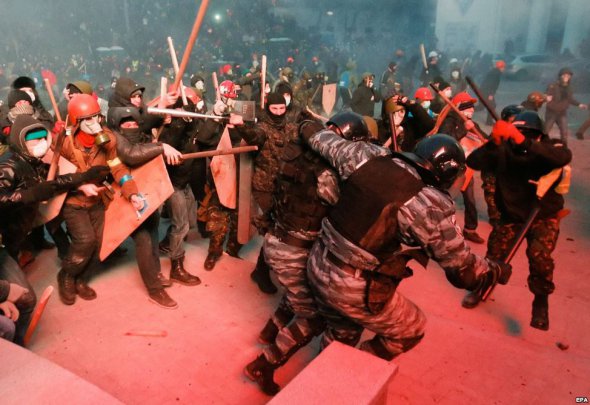 Протистояння членів Правого сектору та бійців спецпідрозділу "Беркут" у січні 2014 року