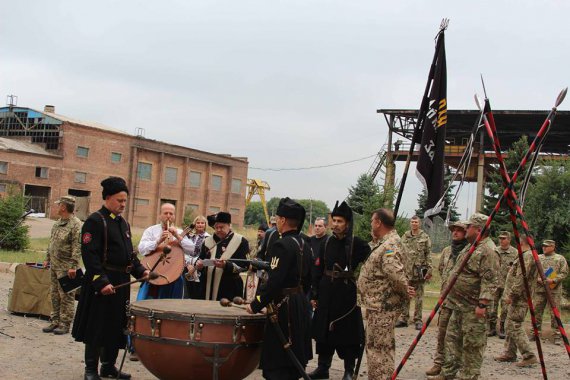 "Вони прибули на Донбас, аби вручити воїнам 72-ї бригади чорне знамено – репліку бойового стяга своїх предків із назвою їхнього полку та його кличем – "Україна або смерть". Стяг та козацьку шаблю командиру бригади полковнику Андрію Соколову вручив сотник польського полку "Чорних запорожців" Роман Боровик", - зазначили у штабі.