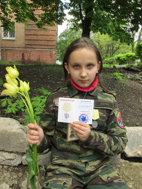 На День Перемоги у тимчасово окупованому Донбасі 10-тирічну дівчинку Богдану Нещерет бойовики нагородили медаллю "За бойові заслуги "Новоросії".