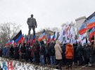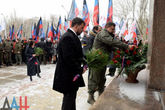 "Сто років тому наші предки сказали "так" рівності, свободі й справедливості, сказали "ні" Заходу. Донецько-Криворізька республіка створювалася в дуже важкий час: війна, революція, розруха. І, на жаль, вона була пригнічена силами противника. І рівно через 100 років ми - нащадки тих людей - підхопили їхній прапор і сказали "так" рівності, свободі, справедливості, братерству і сказали "ні" Заходу", - сказав ватажок бойовиків Олександр Захарченко на мітингу в центрі.