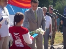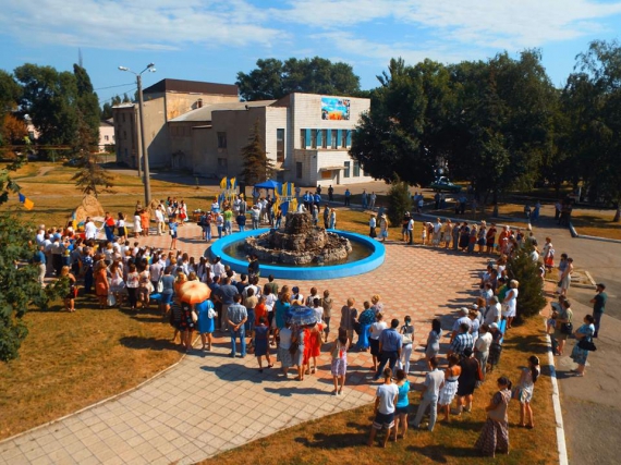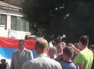 У Дружківці Донецької області під час заходів, приурочених до Дня Конституції України, місцеві жителі розтягли прапор Російської Федерації.
