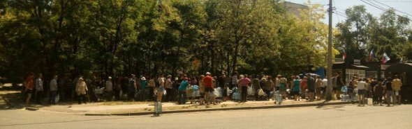 У Маріуполі люди вимушені стояти в чергах за водою, яку не можна вживати без кип'ятіння.