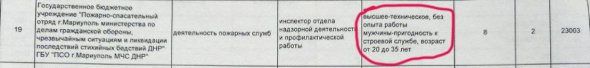 "Наші люди задля перевірки звернулись щодо "працевлаштування". Повідомляють, що в разі згоди будуть направлені до м. Донецьк на "тренування та навчання" на пару місяців. Це цілком співпадає з попередніми інсайдами про план прихованої мобілізації в Маріуполі від окупаційної влади. Власне цікава і посада – інспектор з нагляду, враховуючи що наглядати за пожежною безпекою в Маріуполі немає де", – каже він.