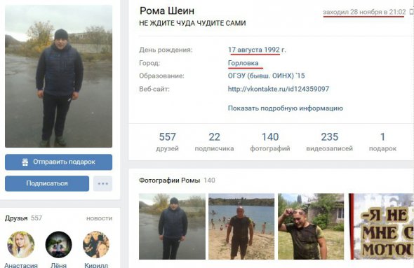 "За інформацією блогера Necro Mancer, 25-річний бойовик з Горлівки Шеїн Роман Юрійович, був ліквідований 29 листопада 2017 року", - йдеться у повідомленні.
