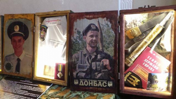 Депутатам і відвідувачам українського парламенту пропонують ознайомитися з фотографіями з місць боїв, розірваними бойовими снарядами, амуніцією, особистими речами, нагородами і портретами українських захисників.