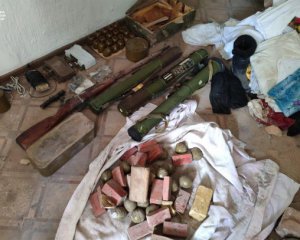У схованці виявили понад 5 кг тротилу, 3 кг пластиду, 3 ручні протитанкові гранатомети, протитанкову міну ТМ 62М, 3 протипіхотні осколкові міни МОН-50, 12 ручних гранат із запалами РГД 5, 16 ручних протипіхотних оборонних ударно-дистанційних гранат РГО, 3 електродетонатори, гвинтівку Мосіна з оптичним прицілом та понад тисячу патронів калібру 5,45.