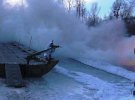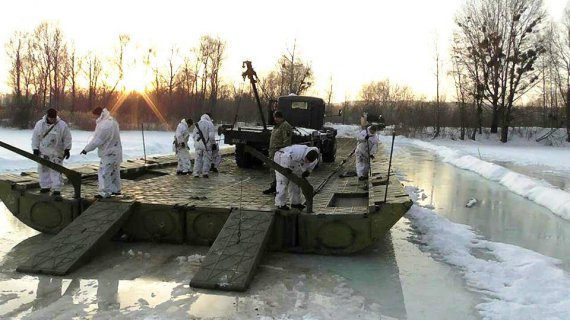 "Воїни 93-ій ОМБр обладнали мостову переправу з понтонно-мостового парку по льоду. Це дозволило в три рази скоротити термін виконання нормативу", - йдеться в повідомленні.