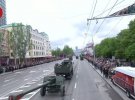 Після цього проїхала військова техніка. Були зразки періоду Другої світової війни і сучасне озброєння. За прогнозами окупантів, в параді мали задіяти близько 80 одиниць техніки.