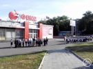 На мітингу були присутні ветерани і школярі. Учасники акції тримали в руках прапори так званої ДНР