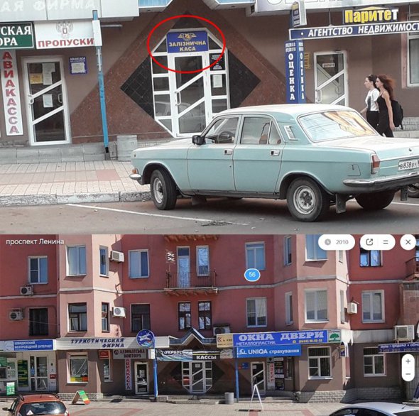 Раніше у відзнятій будівлі теж була каса, але з вивіскою російською мовою.