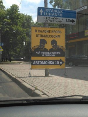 Соцмережі вразила своїм креативом реклама автомийки в Донецьку. Її власник по особливому вирішив зацікавити водіїв вимити свої машини.