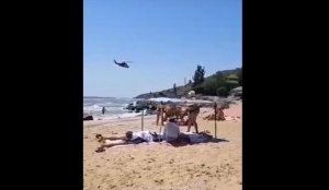 У районі селища Рибальське біля Маріуполя бойовий вертоліт Збройних сил України пролетів над пляжем з десятками відпочивальників.
