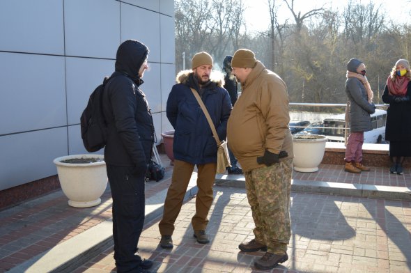 "Призначили винним ветерана війни. Він рік сидить в тюрмі, без будь-яких доказів його провини. Може змусять Андрія свідчити проти себе. Тоді Аваков та Зеленський стануть героями. Андрію нема в чому зізнаватись, бо всі докази за рік би вже знайшли. Тут дуже холодно, та й до Ріфа не пускають ні журналістів, ні активістів. Прикриваються Ковідом. Але в інше приміщення, як ми бачимо, пускають. Значить бояться", - каже Пархоменко. Гасить цигарку та кидає недопалок до урни.