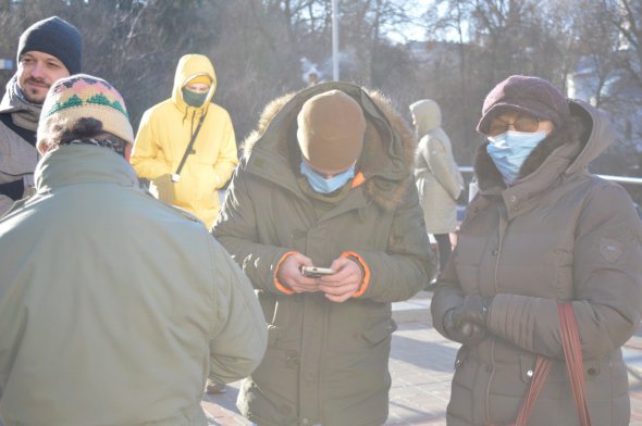 З кожним часом стає все холодніше, але люди стоять. В дворі перебуває два десятки людей. Всі розмовляють про суд, Covid-19 і крритикують нинішню владу.