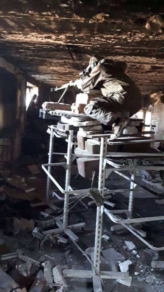"За мить до пострілу. Кілька днів спостереження і підготовки, пошук позиції, побудова конструкції. І все заради одного єдиного точного пострілу. Це будні одного з підрозділів Донецької області", - йдеться в підписі до фото снайпера на сторінці фонду "Повернись живим" в Facebook.