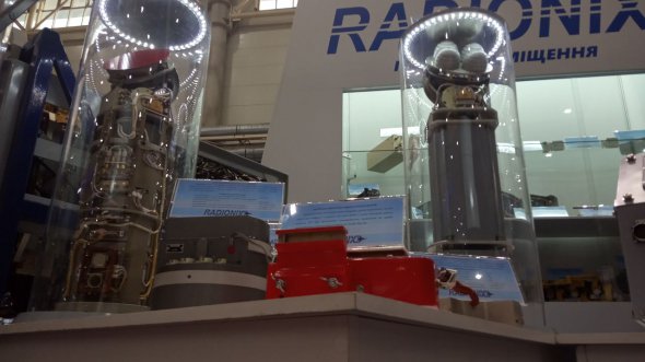 Поруч стенд з написом "Імпортозаміщення", на ньому стоять деталі, які Україна почала виготовляти самостійно.