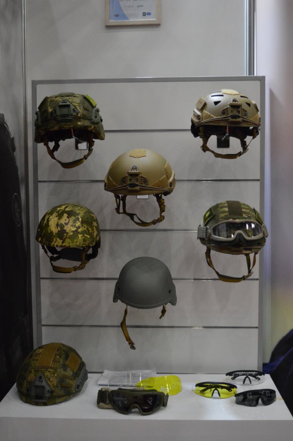 Навпроти "Отаману" стенд із шоломами компанії "UARMS". Їх вже використовують в українському війську, але це не причина, щоб не виставити свої найкращі роботи.