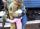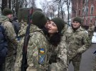 Рідні та друзі зустрічали бійців, які служать у зведеному загоні окремого полку зв'язку та радіотехнічного забезпечення з обіймами та квітами.