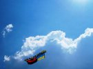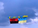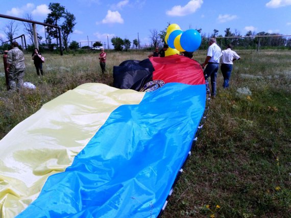Люди запустили на повітряних кульках в небо український прапор. Відповідні фото опублікували на сторінці "Ісус Навин" у Twitter.