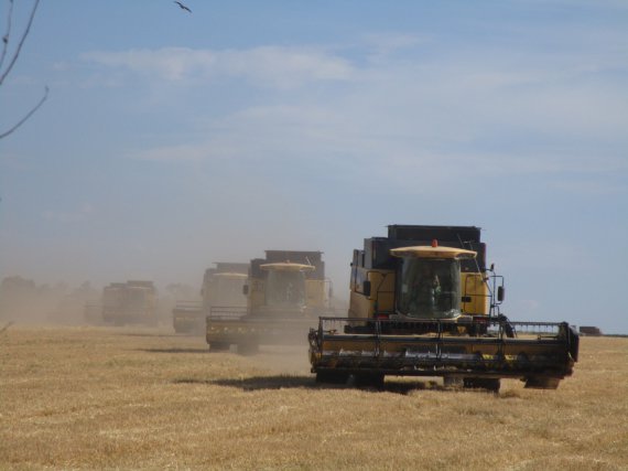"Збираємо хліб, доки є така можливість. Удень переважно не стріляють. Хоча 2016 року нам доводилося працювати під кулями", - кажуть комбайнери.