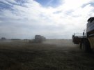 Комбайни заїжджають на пшеничне поле біля села Первомайське Ясинуватського району на Донеччині.