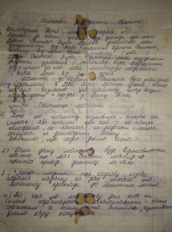 Це була молитва до Ісуса Христа. У ній писали, хто цю молитву носить, говорить про неї чи промовляє, ніколи несподівано не загине. І жодні труднощі йому нестрашні.