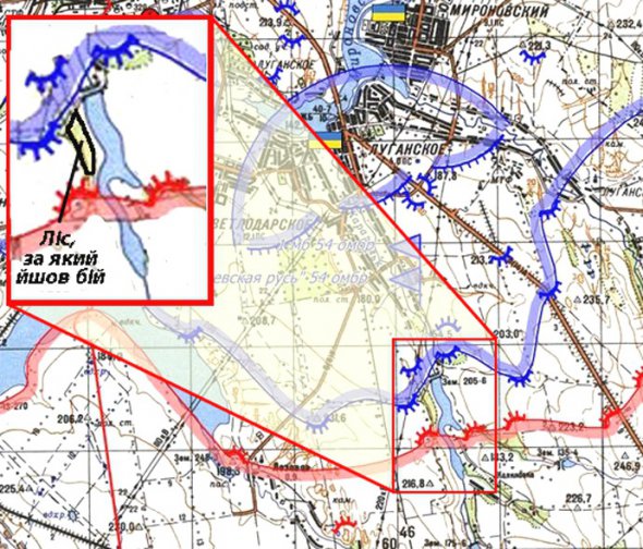 Я був у першій групі разом з Микитою. Ми йшли з лівого боку лісу, там, де позиція "Кемпінг". Успішно захопили дві позиції, виявилося, що сепари їх покинули. Там нікого не було. І вже почали рухатися далі до іншого краю лісу, щоб об'єднатися з нашою другою групою під керівництвом "Кідура". Ми помітили там бліндаж, звідти ніхто не стріляв. Коли підійшли на метрів сто ближче, звідти почав працювати кулемет. І так вийшло, що нашу групу затисли обстрілами з трьох боків. Ми розповзлися по водостоках. Тоді почалися ближні контактні бої, коли до ворогів близько 100 м.