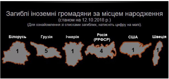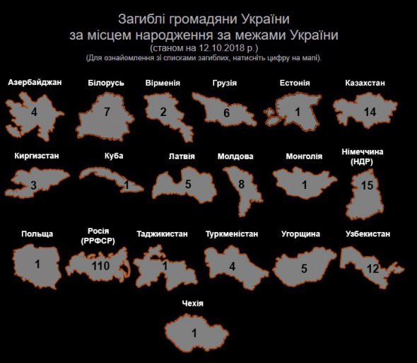 Також є дані про іноземні країни, з яких походили загиблі воїни. На Донбасі загинули 110 уродженців Росії.
