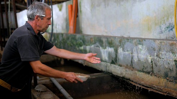 "З мене всі сміялися, бо ніхто не вірив, що можна так вирощувати африканських сомів. 2012 року я був другий чи третій в Україні, у кого вийшло", - говорить 37-річний Леонід Осадчий. Має одну із найбільших в Україні акваферм.